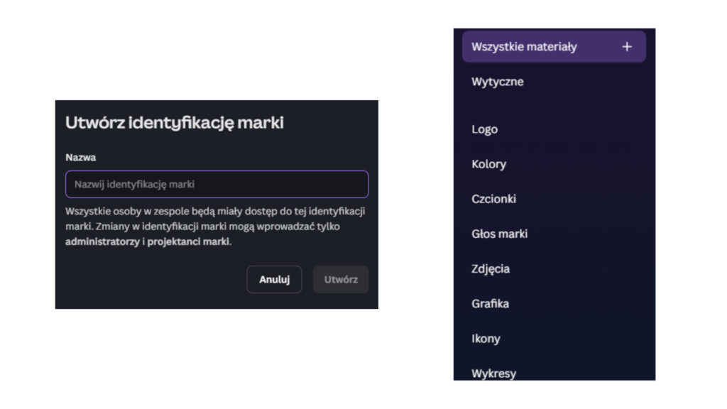 - Własne biblioteki elementów: W folderach marki możesz przechowywać nie tylko logotypy, ale też grafiki i zdjęcia, których używasz najczęściej. Dzięki temu nie musisz ich za każdym razem przesyłać od nowa.