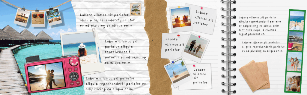 Ten styl to nie tylko „wrzuć zdjęcia i gotowe” – to kompozycja detali, która buduje klimat. I spokojnie, nie potrzebujesz do tego Photoshopa i 18 lat doświadczenia w grafice. Wystarczy kilka kliknięć w odpowiednich miejscach, odpowiednie narzędzia i elementy.
