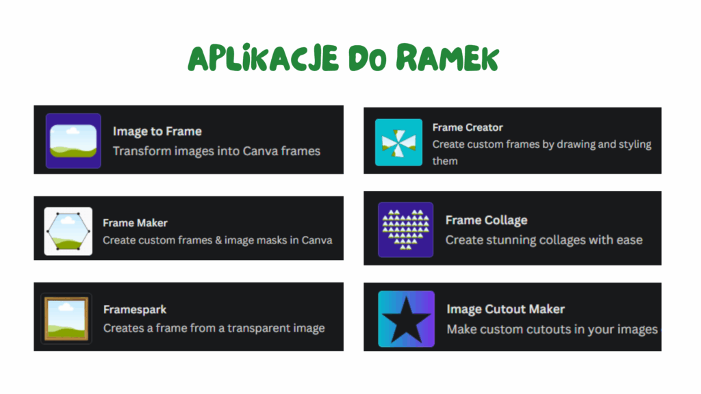 Ramki to jeden z najprostszych sposobów, aby nadać zdjęciu charakter i wyróżnić je w projekcie. Dzięki aplikacjom w Canvie możesz zapomnieć o standardowych prostokątnych obramowaniach i stworzyć coś naprawdę wyjątkowego – od kreatywnych kształtów, przez personalizowane maski, aż po efektowne kolaże.