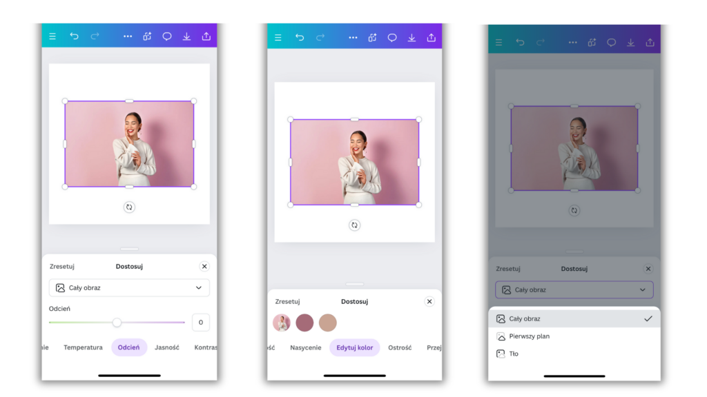 Narzędzia do edycji zdjęć w Canvie mobile