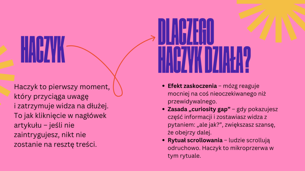 Jeśli Twoja karuzela, post albo wideo tworzy napięcie, obiecuje rozwiązanie albo kończy się „ciągiem dalszym” – masz większą szansę, że odbiorca: