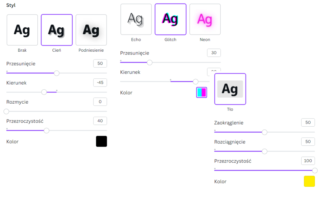 - Gradienty kolorystyczne: Użytkownicy mogą wybrać z różnych gradientów kolorystycznych lub stworzyć własne, co pozwala na tworzenie tekstów, które idealnie komponują się z resztą projektu.