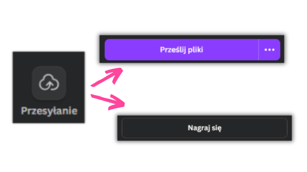 Oprócz biblioteki zasobów Canvy możesz także skorzystać z możliwości przesłania własnych utworów albo nagrania ich w Canvie. Jeśli chodzi o przesyłanie to jest to naprawdę bardzo proste. Oto jak przesłać swoje pliki audio: