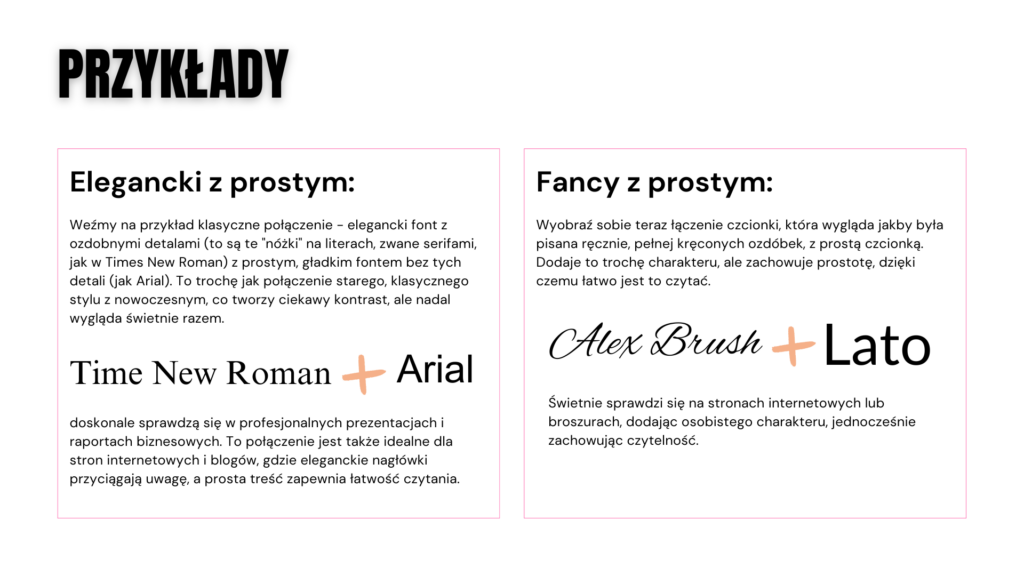 Wyobraź sobie, że dobierasz fonty to jak przygotowywanie sałatki. Chcesz różnorodności – jak różne składniki, które razem tworzą coś smacznego. Podobnie, w projektowaniu graficznym łączysz różne fonty, aby stworzyć coś, co jest zarówno interesujące, jak i przyjemne dla oka. Klucz leży w znalezieniu tej równowagi między czymś, co się wyróżnia (kontrast), a czymś, co pasuje do całości (harmonia).