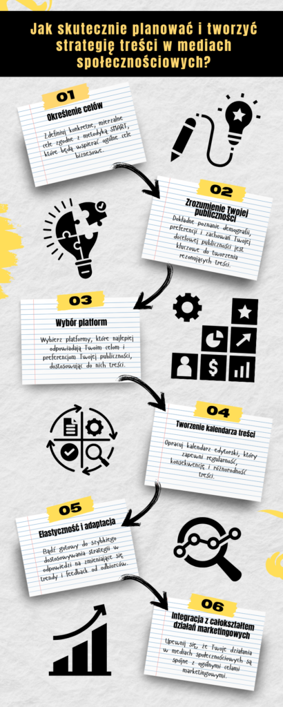 Pamiętaj, że sukces w mediach społecznościowych nie jest wynikiem przypadku, ale efektem starannie zaplanowanej i wykonanej strategii. Elastyczność, kreatywność i ciągłe dostosowywanie do zmieniających się warunków są kluczem do skutecznego angażowania Twojej publiczności i osiągania celów biznesowych.