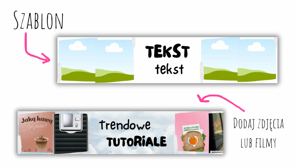- łączenie materiałów wideo i grafik – możesz zestawić dynamiczny klip z prostą planszą z hasłem, co zwiększa kontrast i przyciąga uwagę,