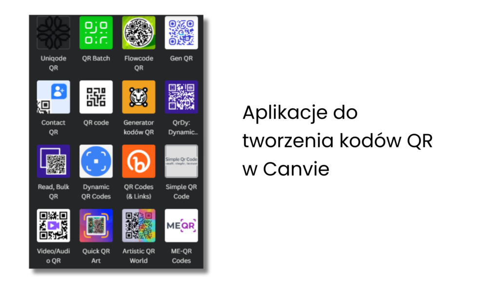Canva oferuje także możliwość korzystania z dedykowanych aplikacji do tworzenia kodów QR, które dostępne są w sekcji „Aplikacje” w edytorze. Aplikacje te pozwalają na jeszcze większe możliwości personalizacji kodów, np. dodanie logo wewnątrz kodu QR lub zmianę jego stylu.