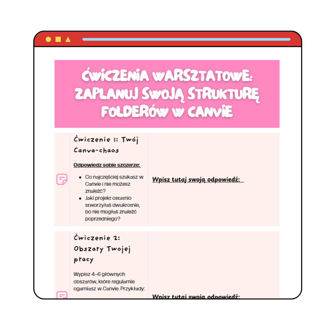👉 Ten warsztat pomoże Ci raz na zawsze uporządkować Canvę, stworzyć prosty system folderów i w końcu pracować szybciej, bez chaosu.