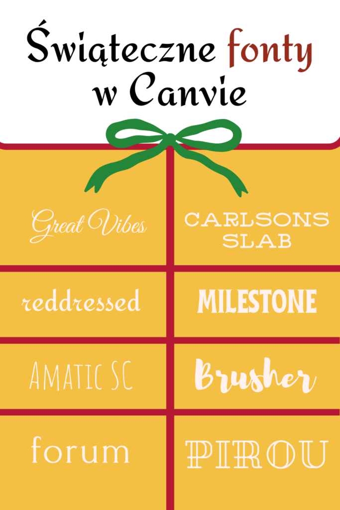 W Canvie można znaleźć kilka świątecznych fontów z polskimi znakami, które idealnie nadają się do tworzenia projektów na Boże Narodzenie. Oto niektóre z nich: