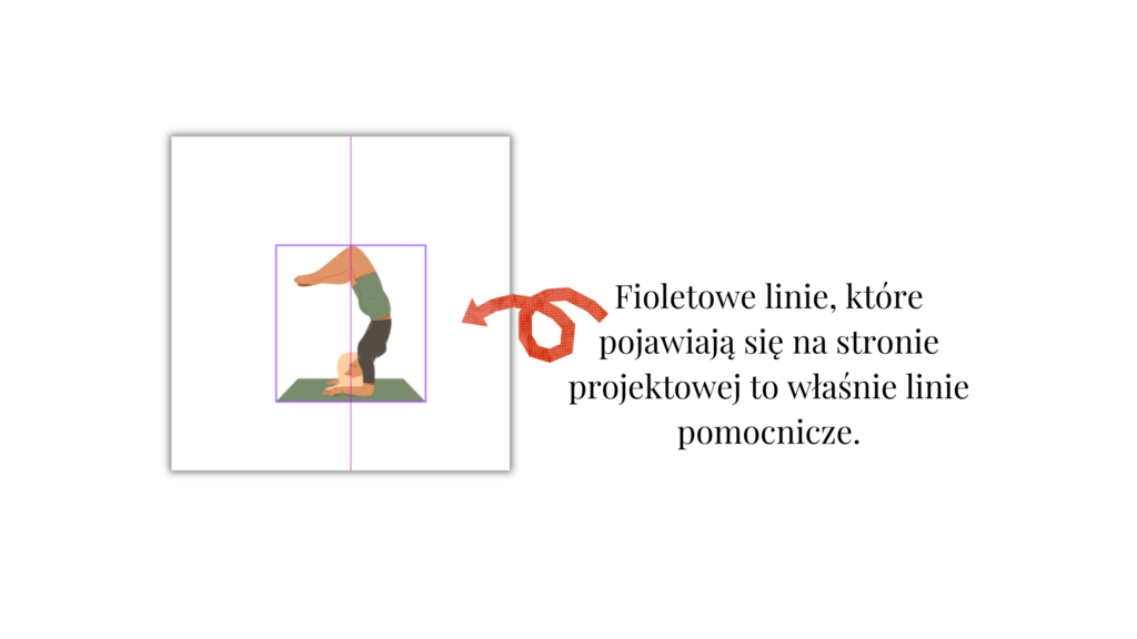 Linie pomocnicze to kolejny element, który działa na podobnej zasadzie. Są to dynamiczne linie, które pojawiają się automatycznie w momencie, gdy elementy Twojego projektu są wyrównywane względem innych obiektów. Kiedy zaczynasz przesuwać tekst lub obrazek w kierunku innych elementów, linie pomocnicze wyświetlają się, aby pomóc Ci ustawić wszystko w jednej linii.