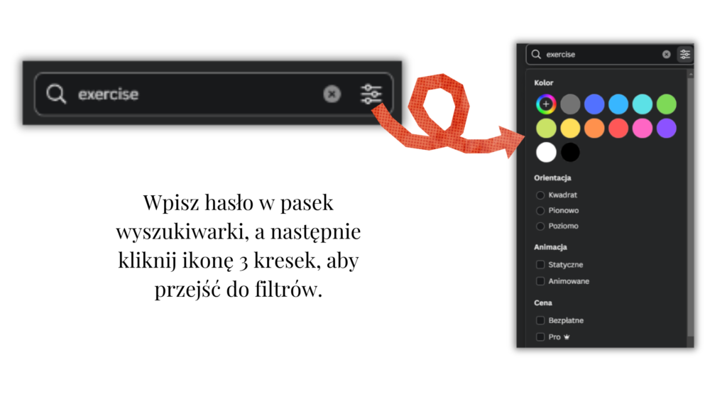 Z pomocą przychodzi także filtrowanie wyników. Canva oferuje możliwość zawężenia wyników wyszukiwania na podstawie koloru, typu elementu (np. zdjęcia, ilustracje, animacje) czy stylu (np. vintage, minimalistyczny, nowoczesny). Dzięki tym filtrom możesz w łatwy sposób dopasować wyniki wyszukiwania do estetyki swojego projektu. To znacznie ułatwia znalezienie pasujących elementów, które będą spójne z resztą grafiki.