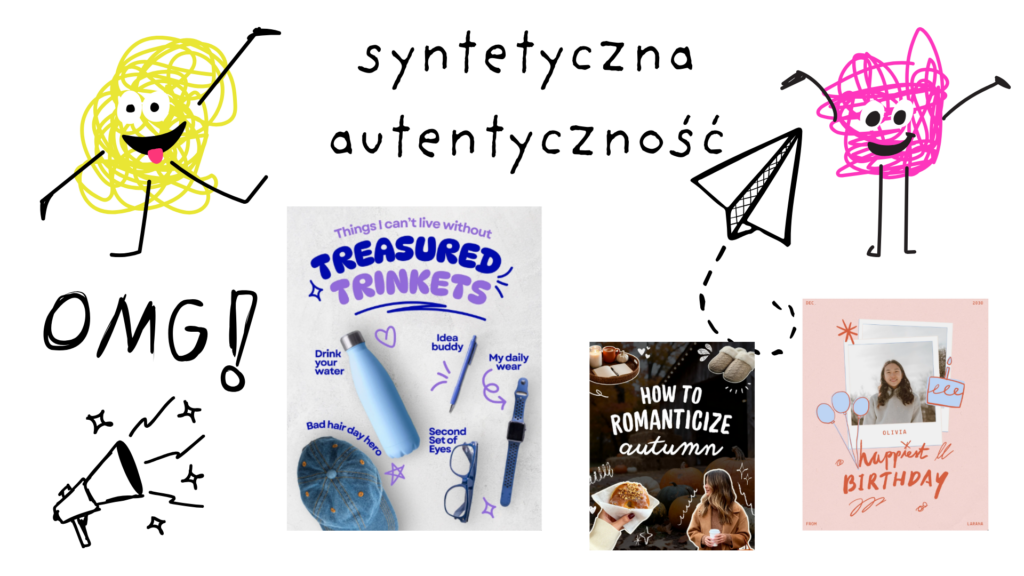 Dlaczego to działa? To estetyka, która buduje bliskość. Idealne grafiki wektorowe wydają się dystansujące i korporacyjne. Z kolei grafika, która wygląda jak wyklejanka z pamiętnika, sprawia wrażenie osobistej, autentycznej i “nieidealnej” w najlepszym tego słowa znaczeniu. Daje odbiorcy poczucie, że za ekranem stoi prawdziwy człowiek, a nie algorytm.